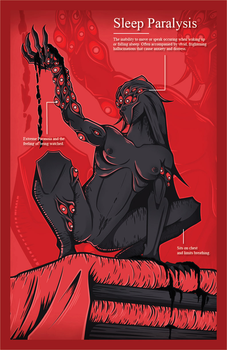 A series of illustrations combining folklore creatures with female liberation